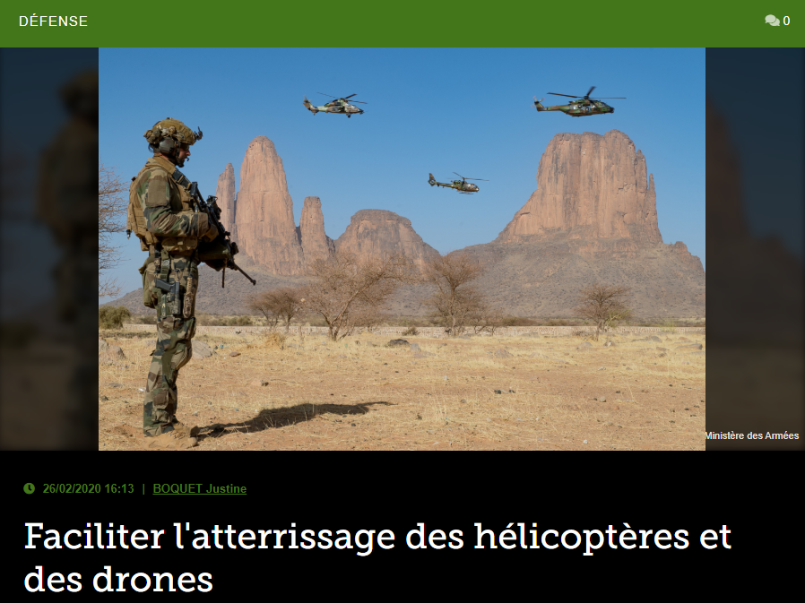 Internet et Musthane, deux PME françaises, ont annoncé leur association visant à fournir aux opérationnels des solutions pour faciliter l’atterrissage des drones et hélicoptères en milieu périlleux. « L’objectif commun recherché par les deux industriels est de fournir aux pilotes d’hélicoptères une solution simple d’utilisation, robuste et dotée d’une faible emprise au sol afin de sécuriser les atterrissages périlleux », rapportent les deux partenaires. Une solution qui se destine en particulier à un emploi en OPEX, où les pistes sont, si ce n’est inexistantes, souvent en piteux état. De plus « les théâtres d’opérations extérieures exposent les pilotes à une évolution dans un environnement visuel dégradé où les risques d’accident sont accrus. A titre d’exemple le poser poussière a causé plus de 50 accidents durant les opérations menées par l’armée américaine entre 2001 et 2007 », illustre Internest.