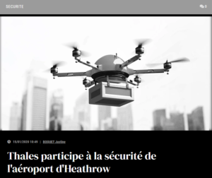 Thales participe à la sécurité de l’aéroport d’Heathrow 20 Jan 2020 Actualité Défense et Sécurité Actualité Aéronautique Actualités Drones
